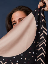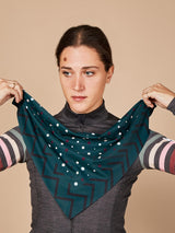 Made in a light warm fabric, and printed on one side with our signature Zig Zag print in contrast with a polka dot multicolor design, the Winter Foulard is a flexible piece of gear that can be used in several ways thanks to its triangular cut.