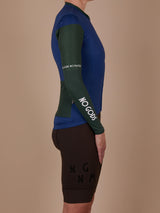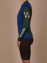 The model is 1,72 cm tall and weighs 56,9 kg. She wears a size XS-S arm warmer, size S jersey, and size S Bib Shorts.