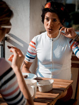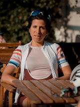 Introducing the new striped summer jerseys! Here're two very lightweight jerseys that feature our new color palette that will work with any bib shorts color in our collection: ivory and rose quartz.