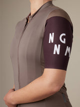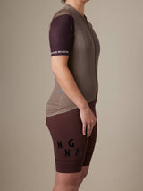 Inspired by the muddy bronze patina of ancient Asian statues, this v.2.0 Jersey comes in a beautiful warm bronze/mud color contrasting the aubergine-brown sleeves. This contemporary colorway and all-around jersey is perfect for road, gravel, or MTB adventures.