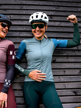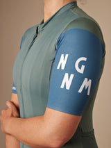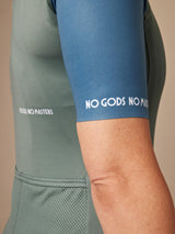 Sage sticks used for different smoke-cleansing rituals inspired the color of this v.2.0 Jersey, which comes in a beautiful, rich sage green with contrasting blue avio sleeves.