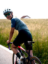Here's a very lightweight summery jersey that performs incredibly well in various temperatures, not only in the scorching heat of the Italian summers. You can pair it with any color of shorts; we love the QuickStop forest green bibs, but they also look stunning in classic black or chocolate brown bib shorts.