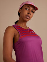 The generous racerback cut and the nano-fabric-perforation front and back assure breathability. The result: stellar wicking and airflow without sacrificing opacity or sun protection. Additionally, the high level of elastane in the fabric allows for good stretch and will fit a wide range of body shapes.
